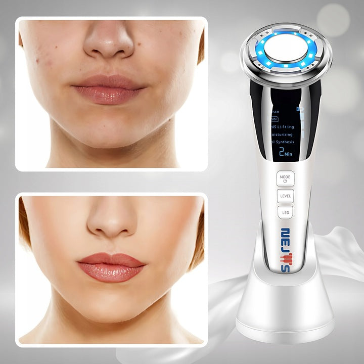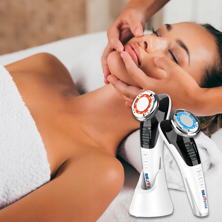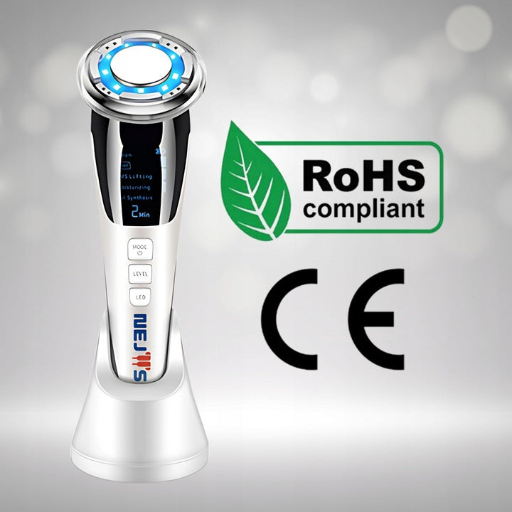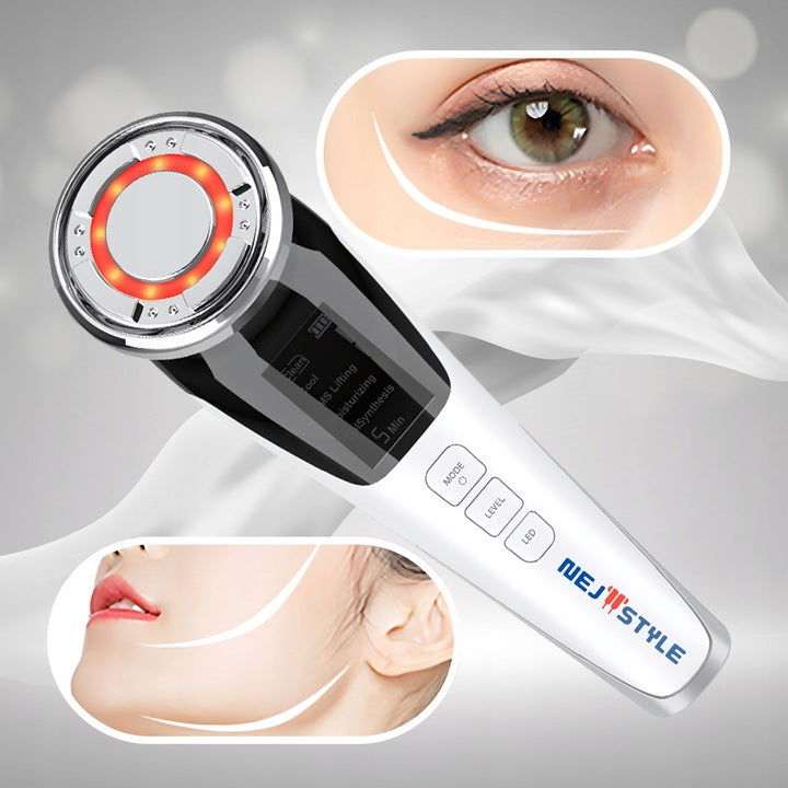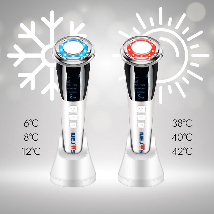 Atraskite modernų veido masažuoklį, kuris leidžia mėgautis SPA procedūrų prabanga neišeinant iš namų. EMS masažuoklis su šilumos terapija skatina mikrocirkuliaciją, kolageno gamybą ir gerina odos būklę. Naudojant 5 funkcijų režimus, įskaitant valymą, drėkinimą, kolageno sintezę, EMS liftingą ir krioterapiją, galima pasiekti stangresnę, lygesnę ir skaistesnę odą. Įrenginys veikia belaidžiu režimu, turi stiprią 1000mAh bateriją, dviejų spalvų LED šviesos funkciją (raudona ir mėlyna) bei šilumos–šalčio režimus. Komplekte – masažuoklis, įkrovimo stotelė, USB laidas, valymo žiedai ir instrukcija. Tobulas pasirinkimas kasdieniam naudojimui ir grožio procedūroms namuose.