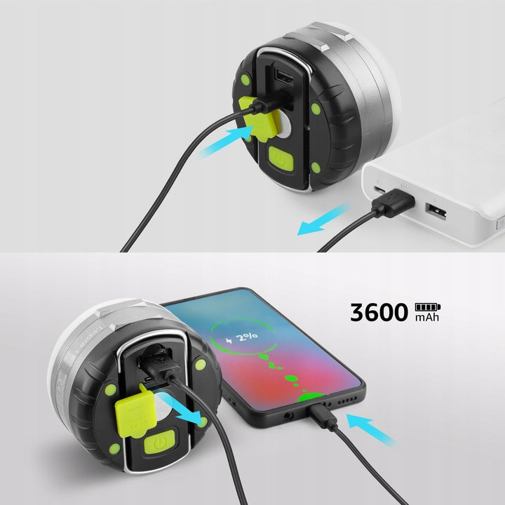 Įkraunama LED lempa – puikus pasirinkimas stovyklavimui, turistinėms išvykoms, avarinėms situacijoms ar tiesiog naudoti namuose. Su 5 apšvietimo režimais, galingu 3600mAh akumuliatoriumi ir papildoma funkcija kaip powerbankas – tai neatsiejamas daiktas kelionėse.