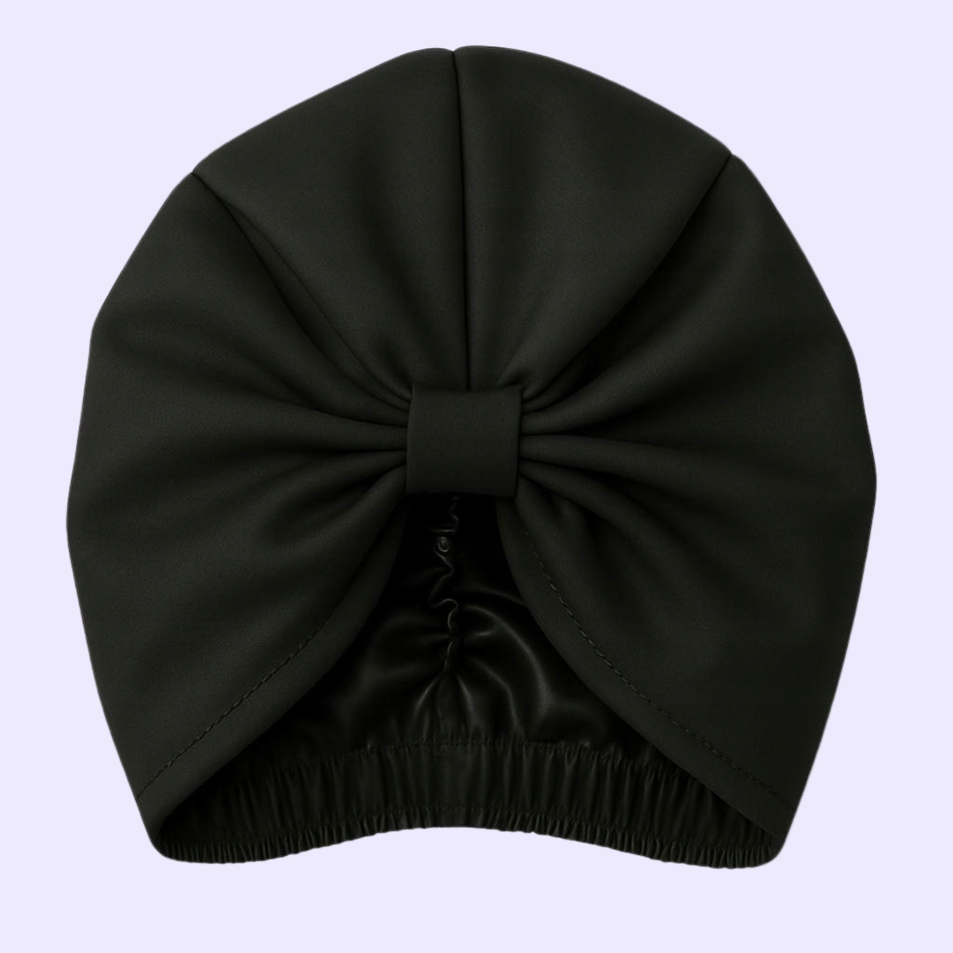 Šilkinė turbaninė plaukų kepuraitė iš 100 % natūralaus šilkmedžio šilko – juoda