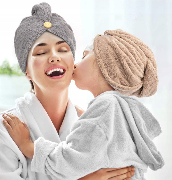 Ypač storas ir drėgmę puikiai sugeriantis mikropluošto rankšluostis-turbanas – idealus pasirinkimas norint greitai ir švelniai nusausinti plaukus po maudynių, baseino ar grožio procedūrų. Dėl patogaus sagos užsegimo turbanas stabiliai laikosi ant galvos, o minkšta medžiaga suteikia malonų komforto pojūtį.