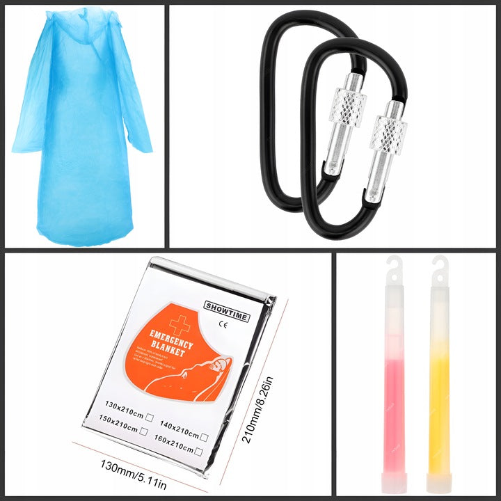 XXXL karinis išgyvenimo rinkinys – tai plačiai išplėstas 80-in-1 daugiafunkcis išgyvenimo komplektas, kuriame rasite viską, ko reikia ekstremalioms situacijoms gamtoje, žygiuose, kelionėse ar kasdienėje buityje. Supakuotas į tvirtą taktinę kuprinę, šis rinkinys pasižymi dideliu funkcionalumu ir patikimumu. Jame yra LED žibintuvėlis, taktinė apyrankė, ugnies uždegiklis, daugiafunkciai įrankiai, 25 vnt. atsuktuvų rinkinys, pirmosios pagalbos vaistinėlė, žvejybos rinkinys ir daug daugiau.