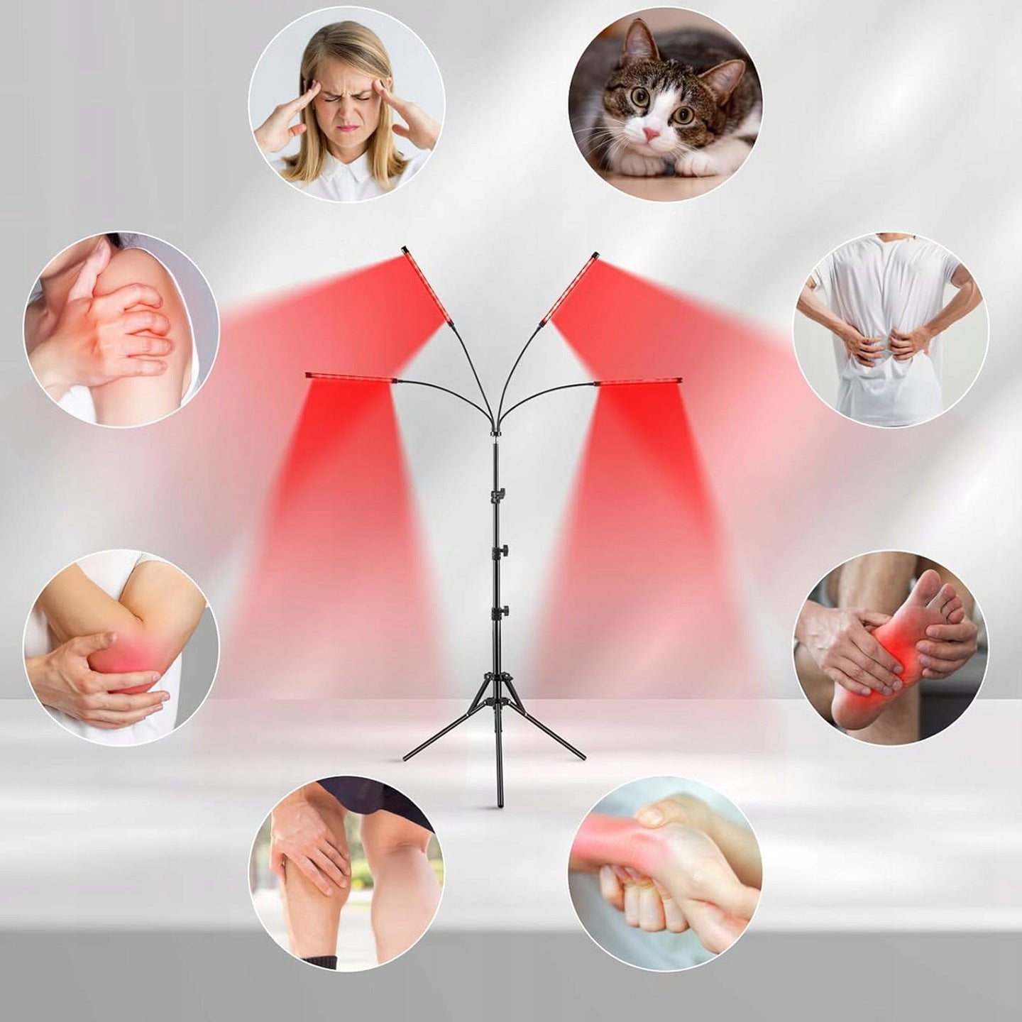 Efektyvi šviesos terapija raudonais ir infraraudonaisiais spinduliais skirta raumenų atpalaidavimui, miego kokybės gerinimui ir bendram atsipalaidavimui. Lempa turi 180 LED (660 nm ir 850 nm), 11 ryškumo lygių, 3 veikimo režimus, laikmatį (10–30 min), reguliuojamą trikojo stovą ir nuotolinį valdymą.
