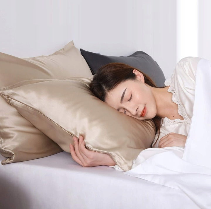 Pagalvės užvalkalas „CHAMPAGNE“ – tai aukščiausios kokybės pasirinkimas iš 100 % natūralaus šilkmedžio šilko (6A klasės, 22 momės), užtikrinantis neprilygstamą komfortą, eleganciją ir grožio naudą Jūsų odai bei plaukams.