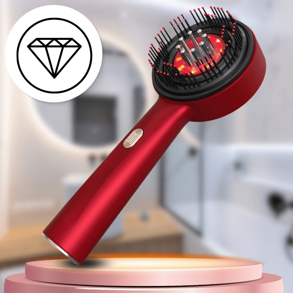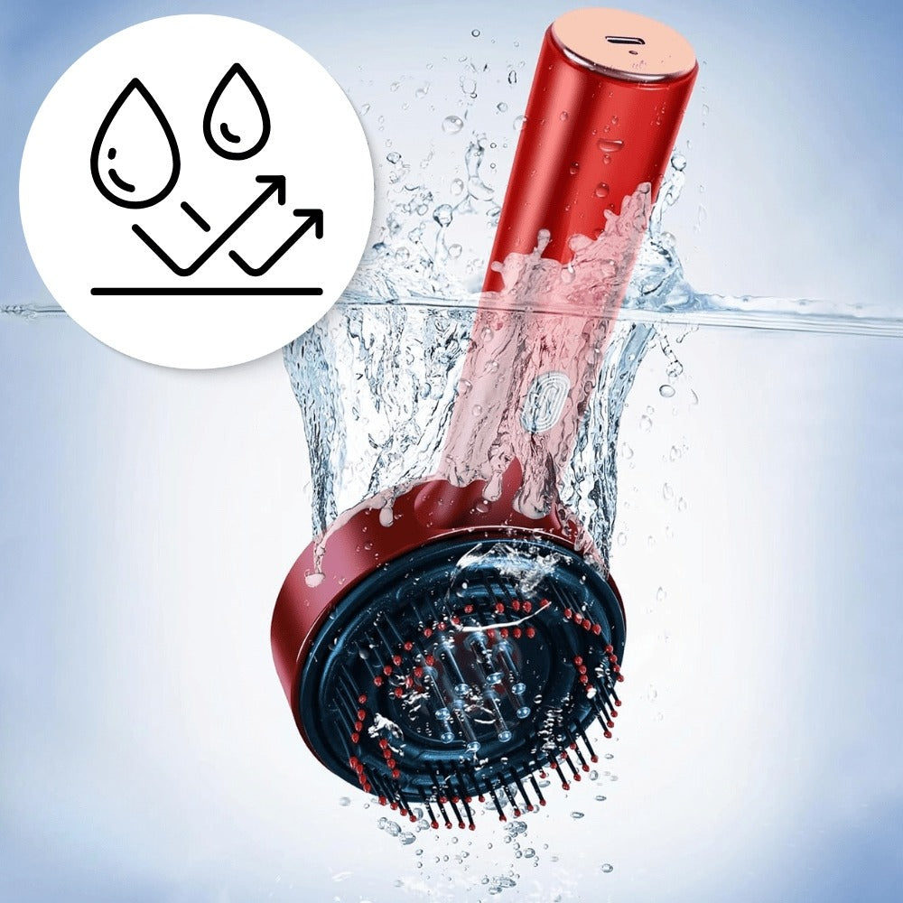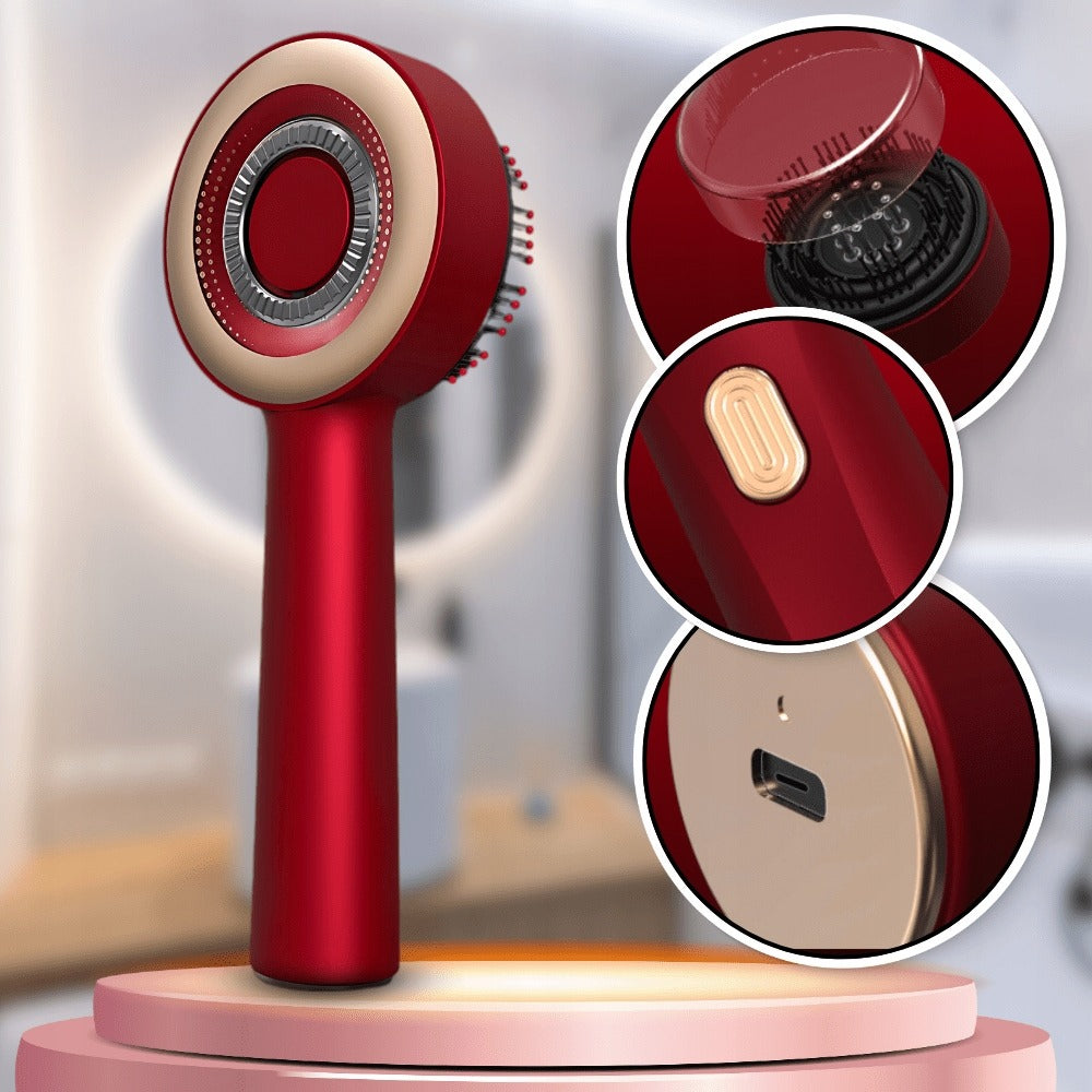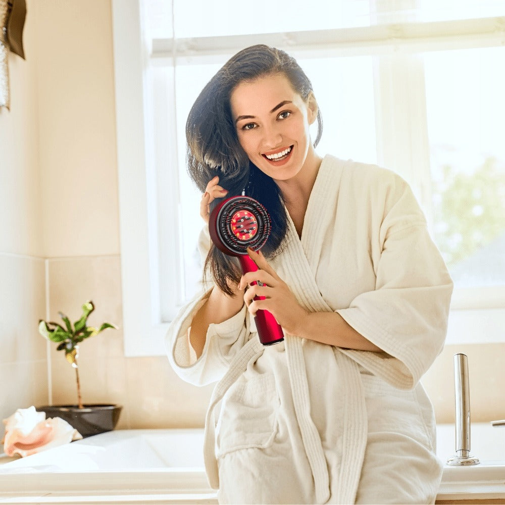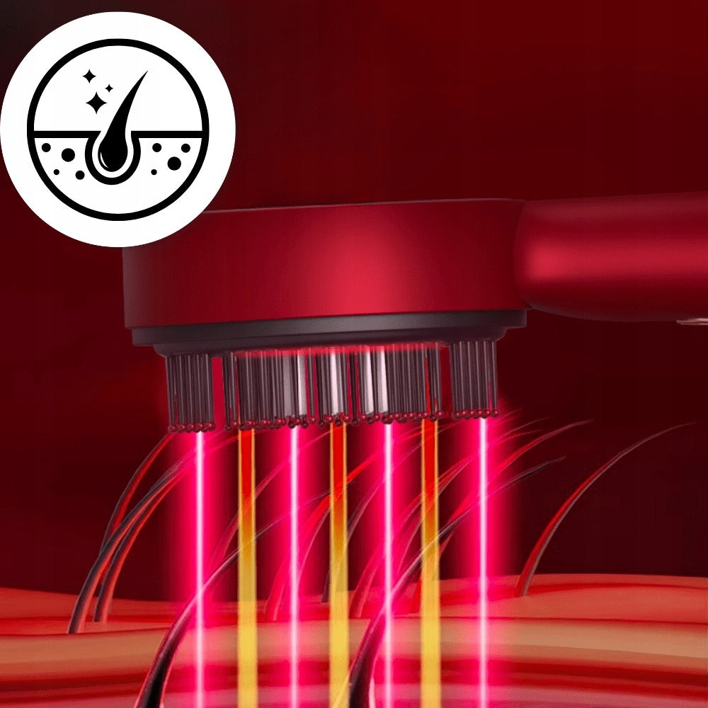 Regeneruojantis galvos odos masažinis šepetys šviesos terapijai, plaukų augimui, raudona spalva